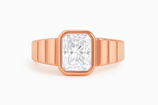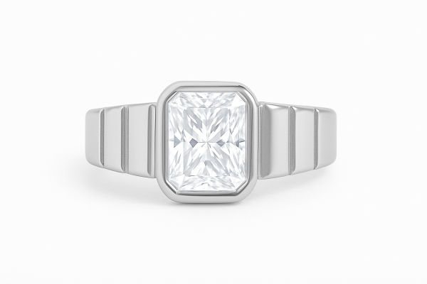 העיצוב משלב קווים נקיים וגימור מודרני, עם חריצי צד רחבים המעניקים לטבעת נוכחות עוצמתית אך יוקרתית.