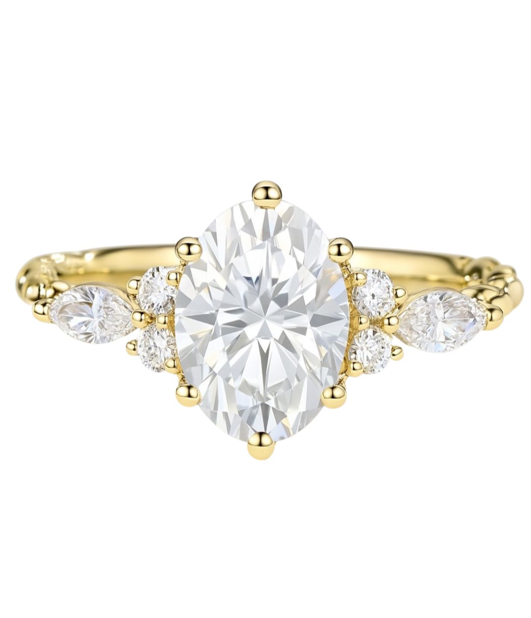 טבעת יוקרתית ומרשימה בעיצוב קלאסי ונשי במיוחד, עשויה זהב , ומשובצת ביהלום מרכזי אובלי בחיתוך מדויק שמקנה לו ברק יוצא דופן.