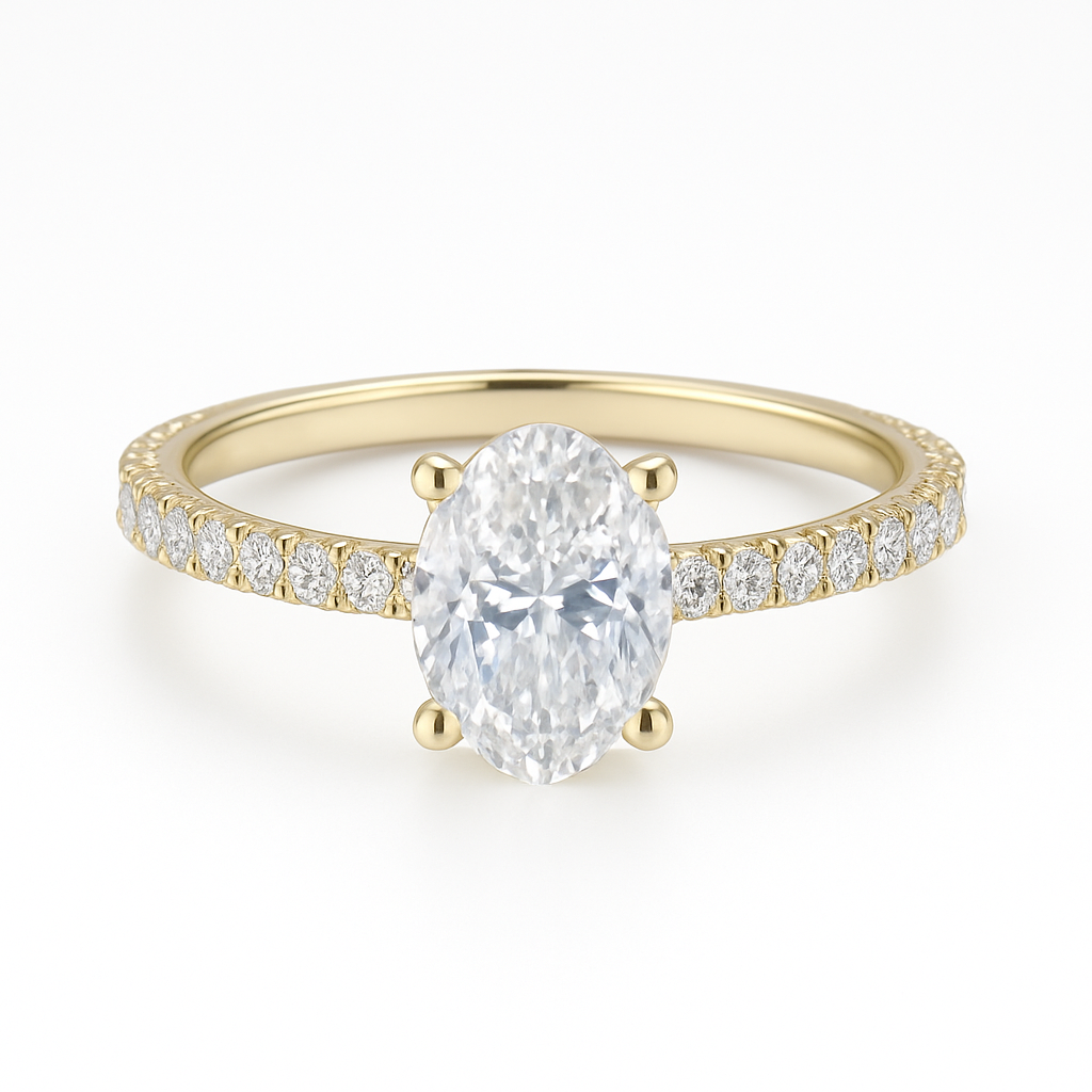 במרכזה משובץ יהלום אובלי נוצץ , השובה את העין בברק יוצא דופן.