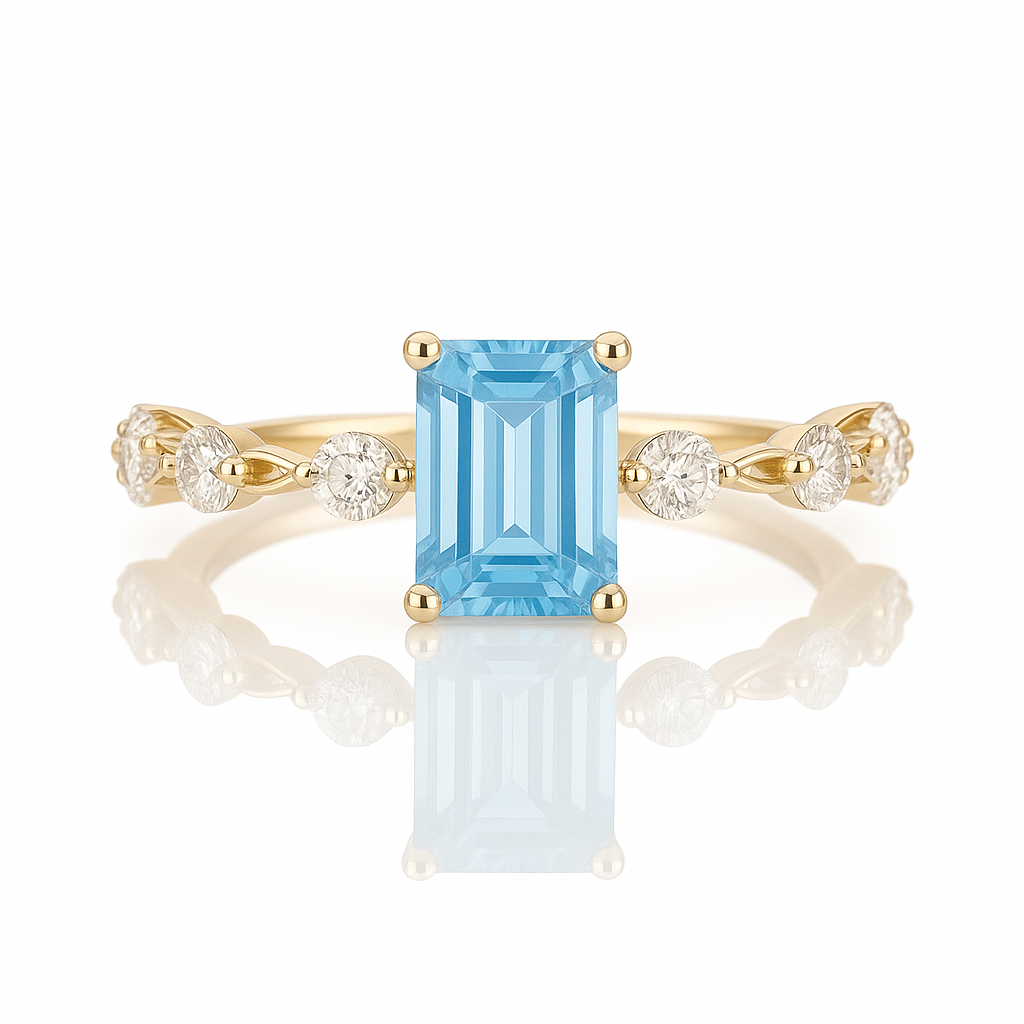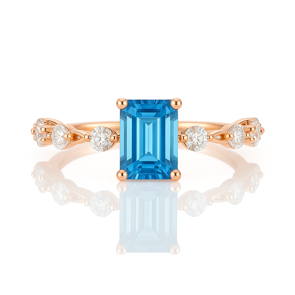 טבעת יוקרתית עשויה זהב 14K, משובצת אבן חן מרכזית בחיתוך אמרלד בגוון ספינל (Spinel)  –  היא לא רק יפה ועמידה – היא גם נחשבת לאבן חן עם משמעות רוחנית וסמלית עמוקה –