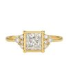 טבעת אירוסין בעיצוב מעודן ומרשים, עשויה זהב. במרכזה משובץ יהלום פרינסס נוצץ בחיתוך מדויק, הלוכד את האור מכל זווית ומפיץ ברק עוצר נשימה.