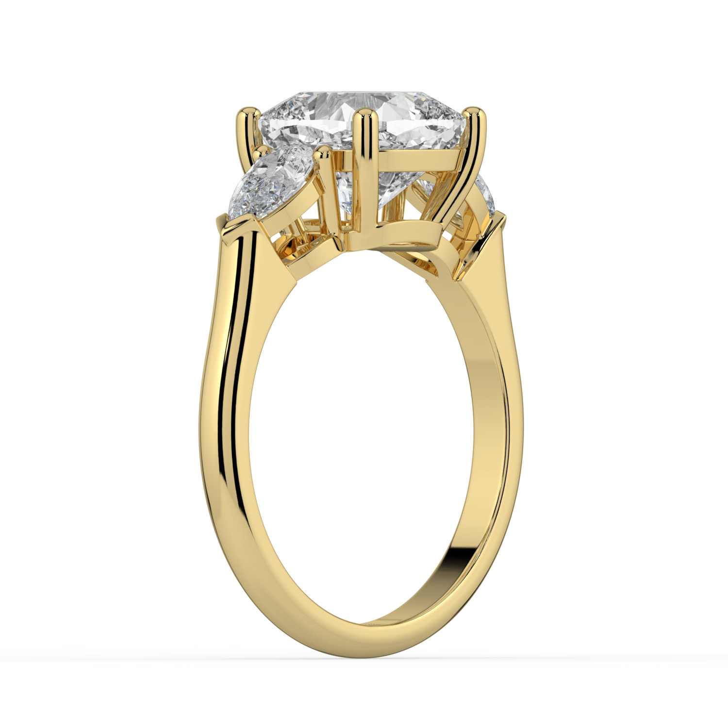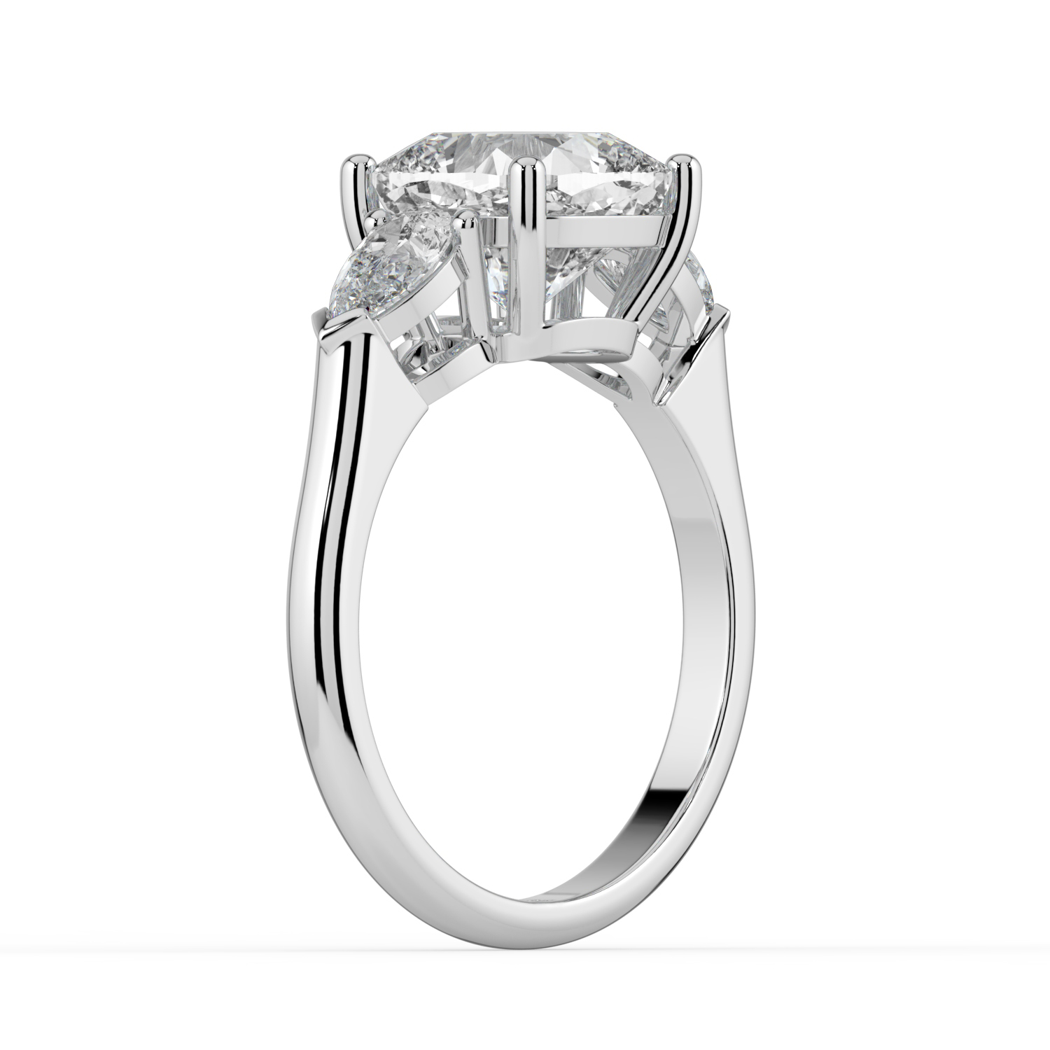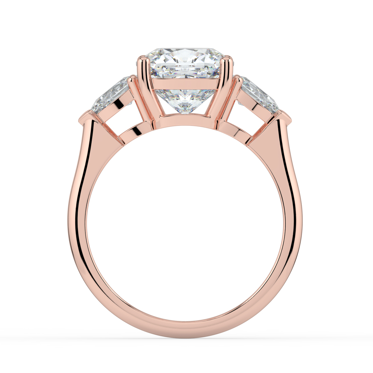 טבעת יהלומים משולשת – יהלום מרכזי Cushion ולצידו שני יהלומי טיפה