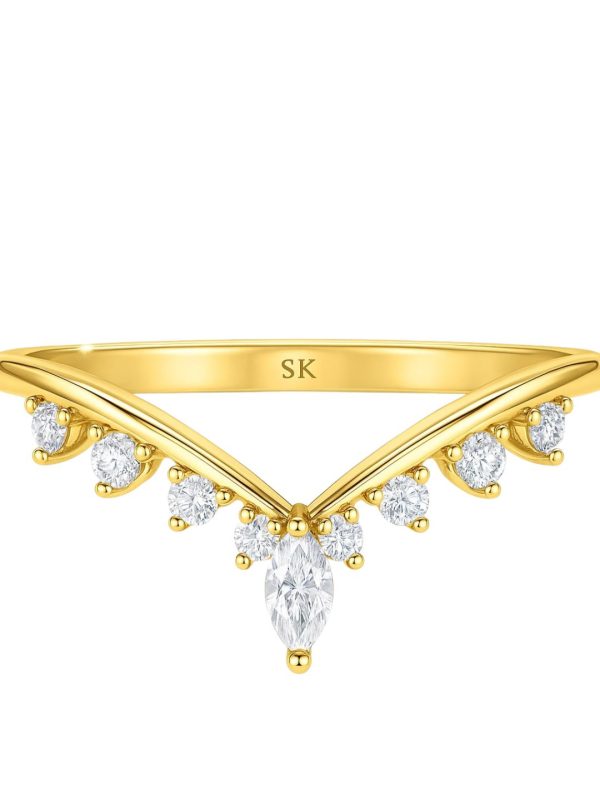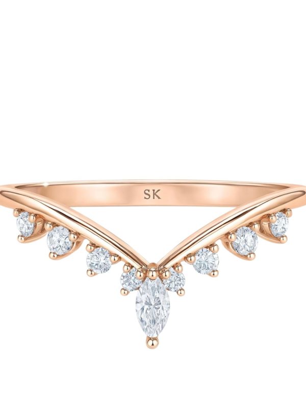 עיצוב: טבעת בצורת V, מותאמת ללבישה בפני עצמה או כחלק מסט.