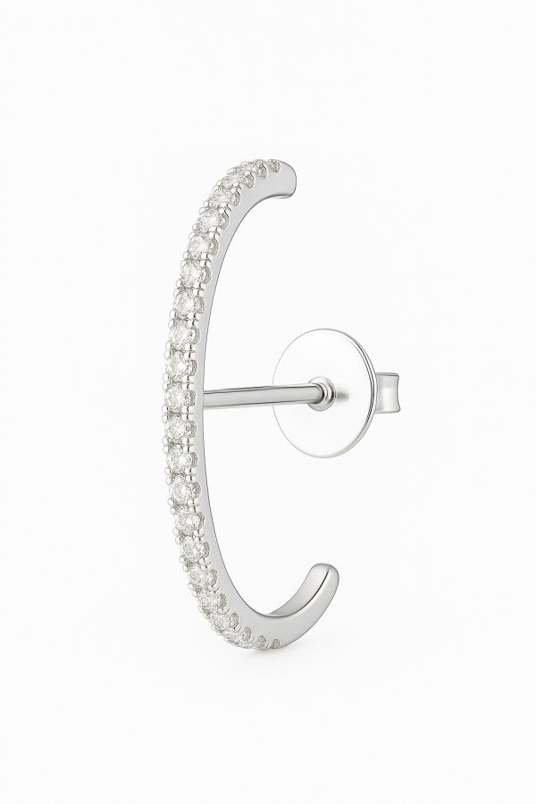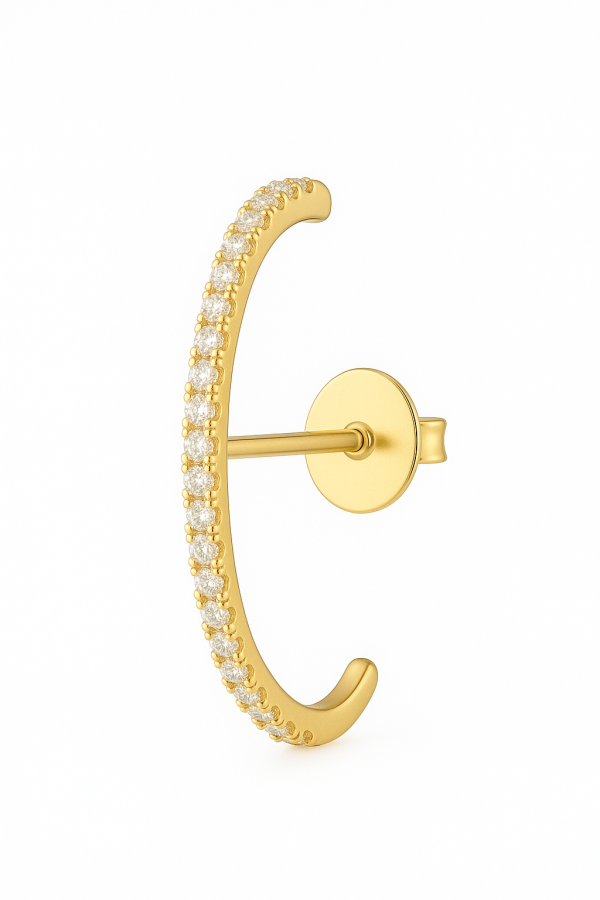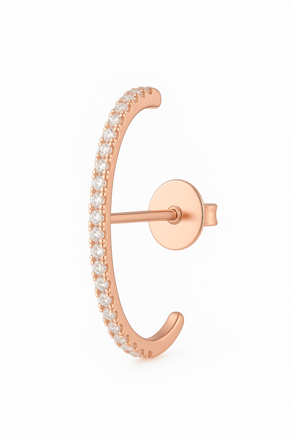עגיל חישוק פתוח מזהב ורוד 14K, משובץ יהלומים נוצצים בחיתוך עגול לכל אורכו.