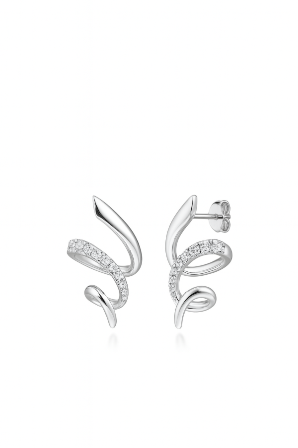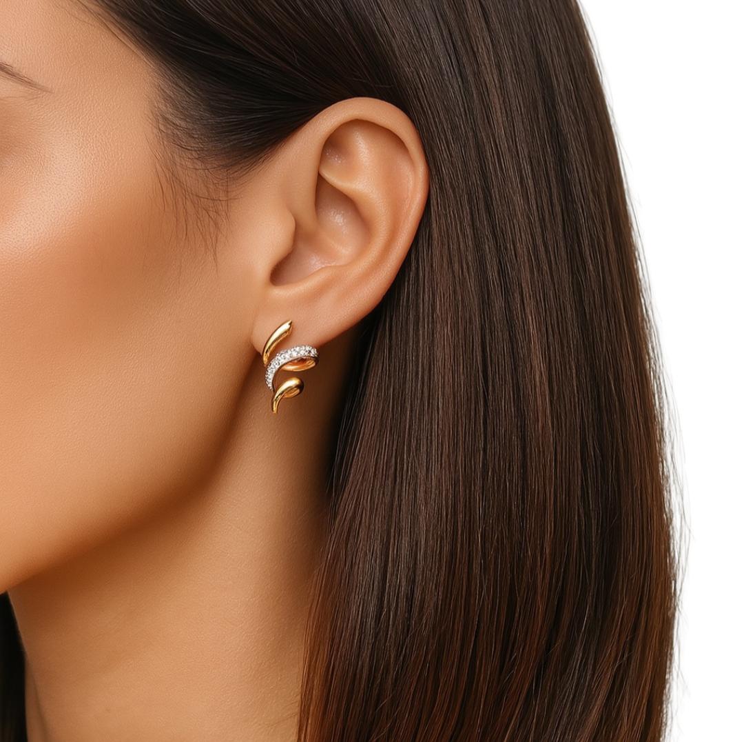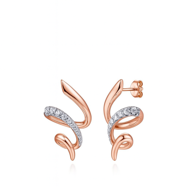 העגילים עשויים זהב בעבודת גימור מושלמת ומשובצים ביהלומים טבעיים/מעבדה סה"כ 0.20 ct , המלווים את הקווים הזורמים של העיצוב ומעניקים ברק מרהיב.