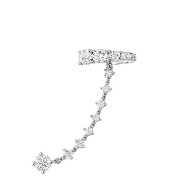 עגיל יוקרתי וייחודי בעיצוב מודרני, עשוי זהב. העגיל מעוטר בשורת יהלומי מעבדה/טבעיים עגולים , המשובצים לאורך חישוק אליקס *ללא חור* עדין וצמוד לאוזן .