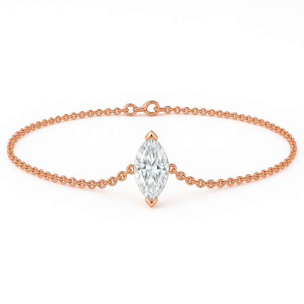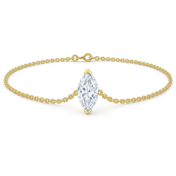 נגיעה של יוקרה עדינה למראה שלך עם צמיד סוליטר קלאסי, עשוי זהב ומשובץ ביהלום בחיתוך מרקיזה .