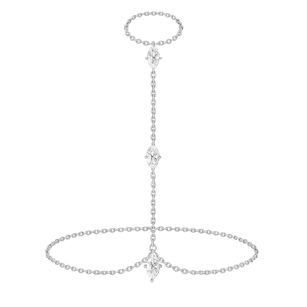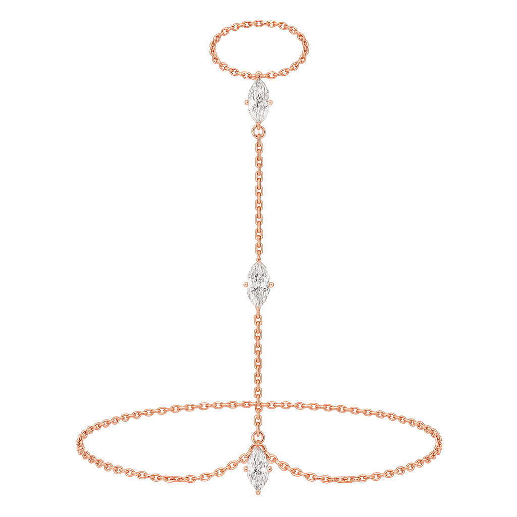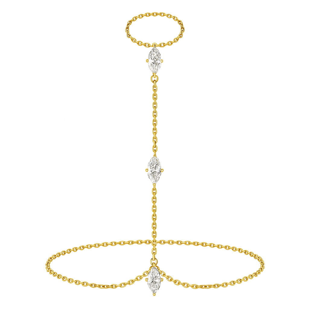 צמיד יד משולב טבעת, עשוי זהב , המעוטר בשלושה יהלומי מעבדה בליטוש מרקיזה .