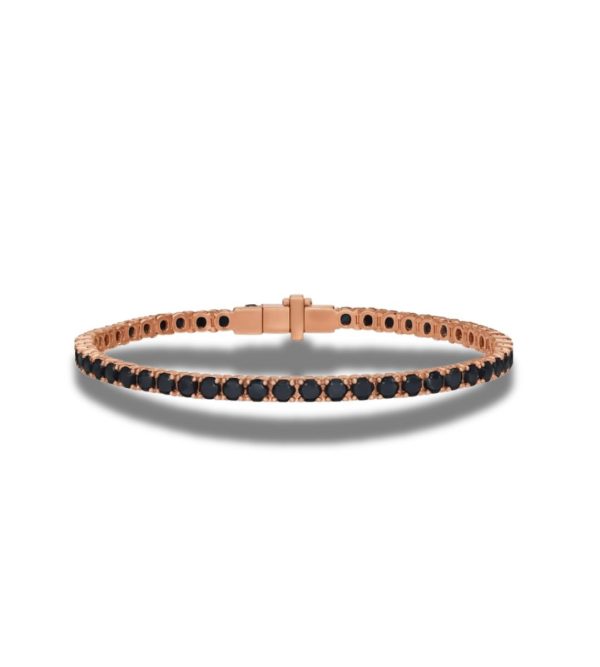 צמיד טניס יוצא דופן בעיצוב ייחודי ונועז, עשוי זהב באיכות הגבוהה ביותר, ומשובץ לכל אורכו ביהלומים שחורים בליטוש עגול.