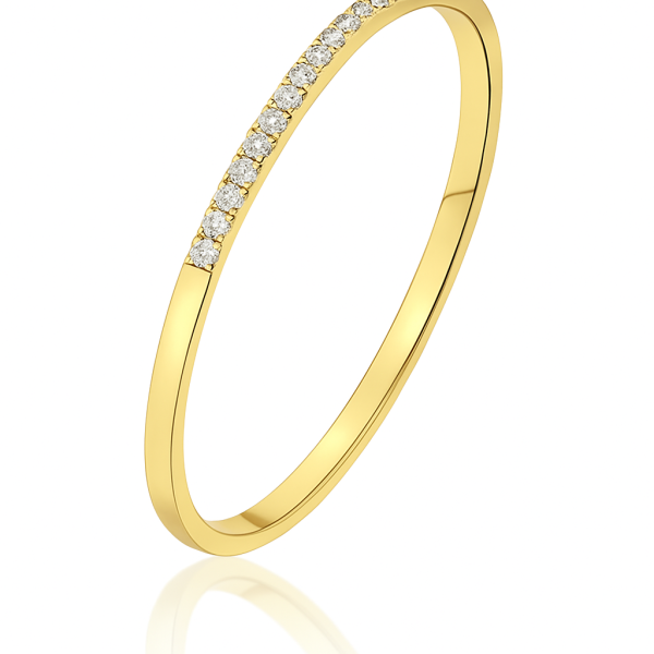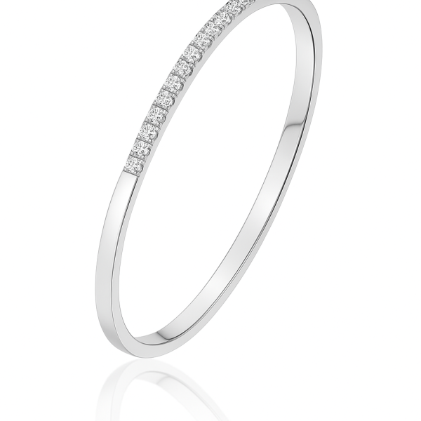 צמיד קשיח אלגנטי ועדין עשוי זהב, עם שורת יהלומים עגולים משובצים בהיקף קדמי בגימור נקי ומדויק על חצי צמיד.