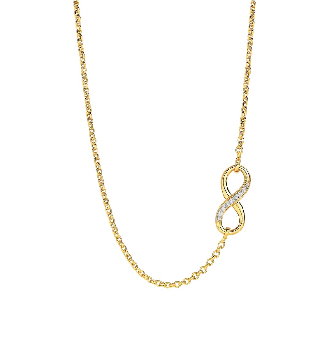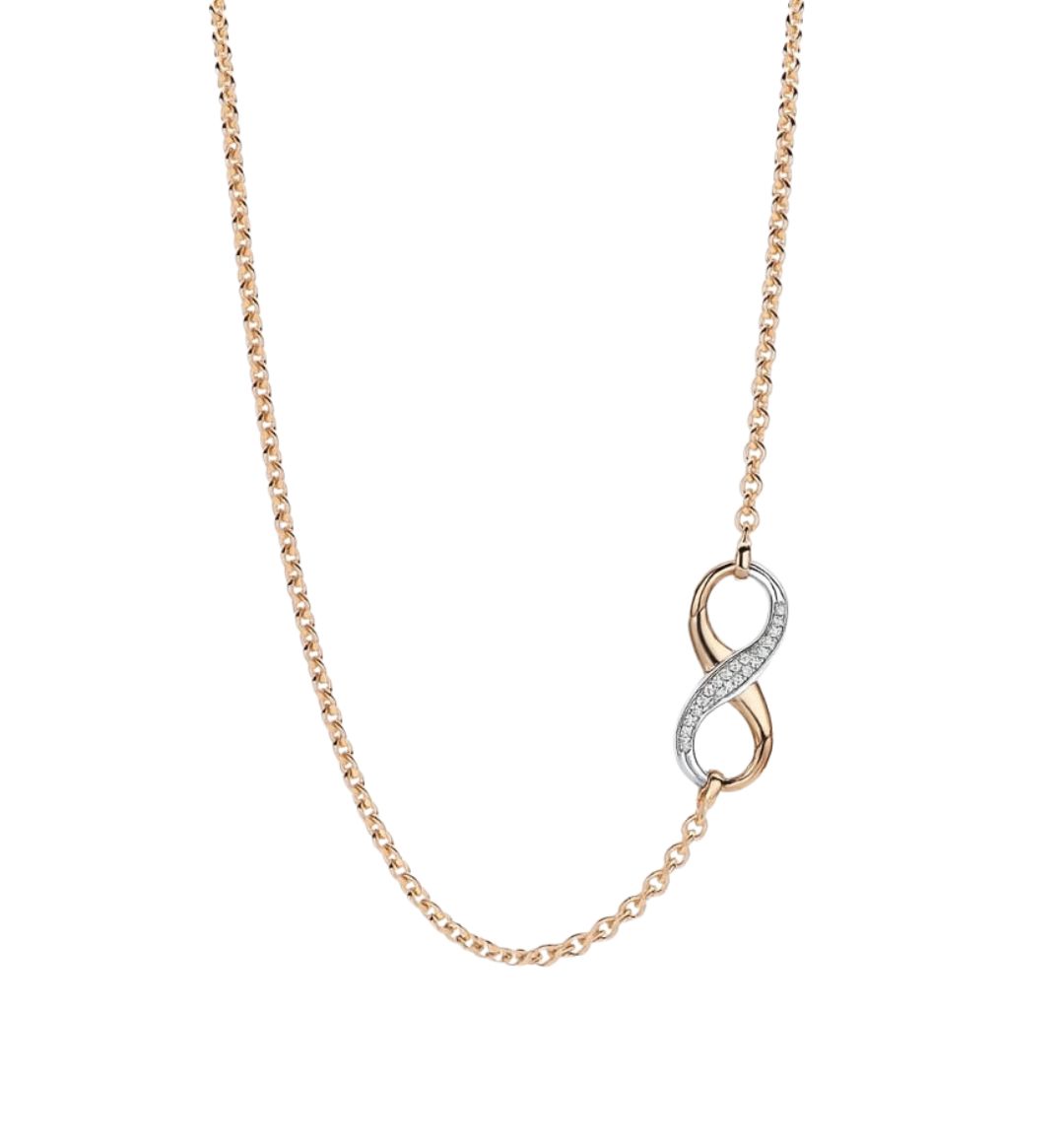 השרשרת מסדרת Infinity מעוצבת ועשויה מזהב עם תליון עדין בצורת סמל האינסוף – ∞ – המעיד על קשר שאין לו סוף.