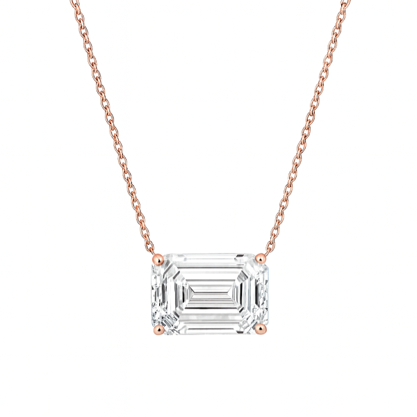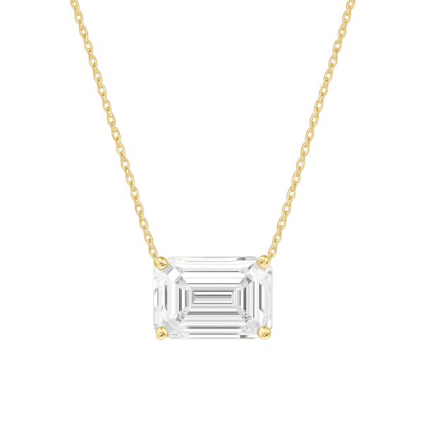 שרשרת יוקרתית ועדינה בעיצוב נצחי, משובצת יהלום אמרלד נוצץ בליטוש מדויק, המשובץ בארבע שיניים עדינות שמדגישות את יופיו –