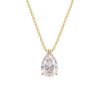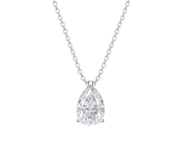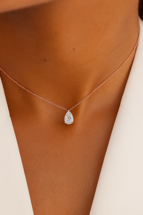 תליון בצורת טיפה, משובץ יהלום נוצץ בחיתוך טיפה המתאפיין בזוהר יוצא דופן ואפקט אור ייחודי.