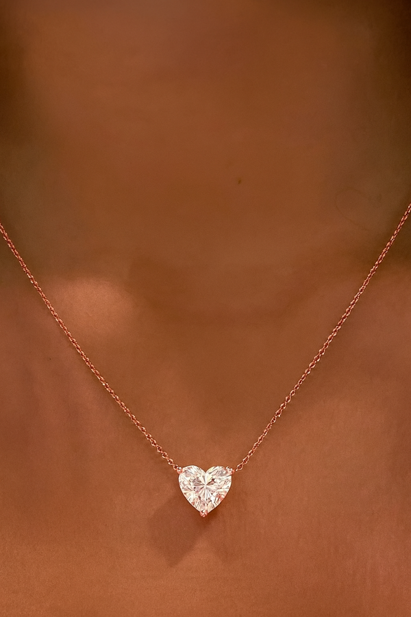 שרשרת זהב עדינה שבמרכזה יהלום נוצץ בחיתוך צורת לב