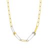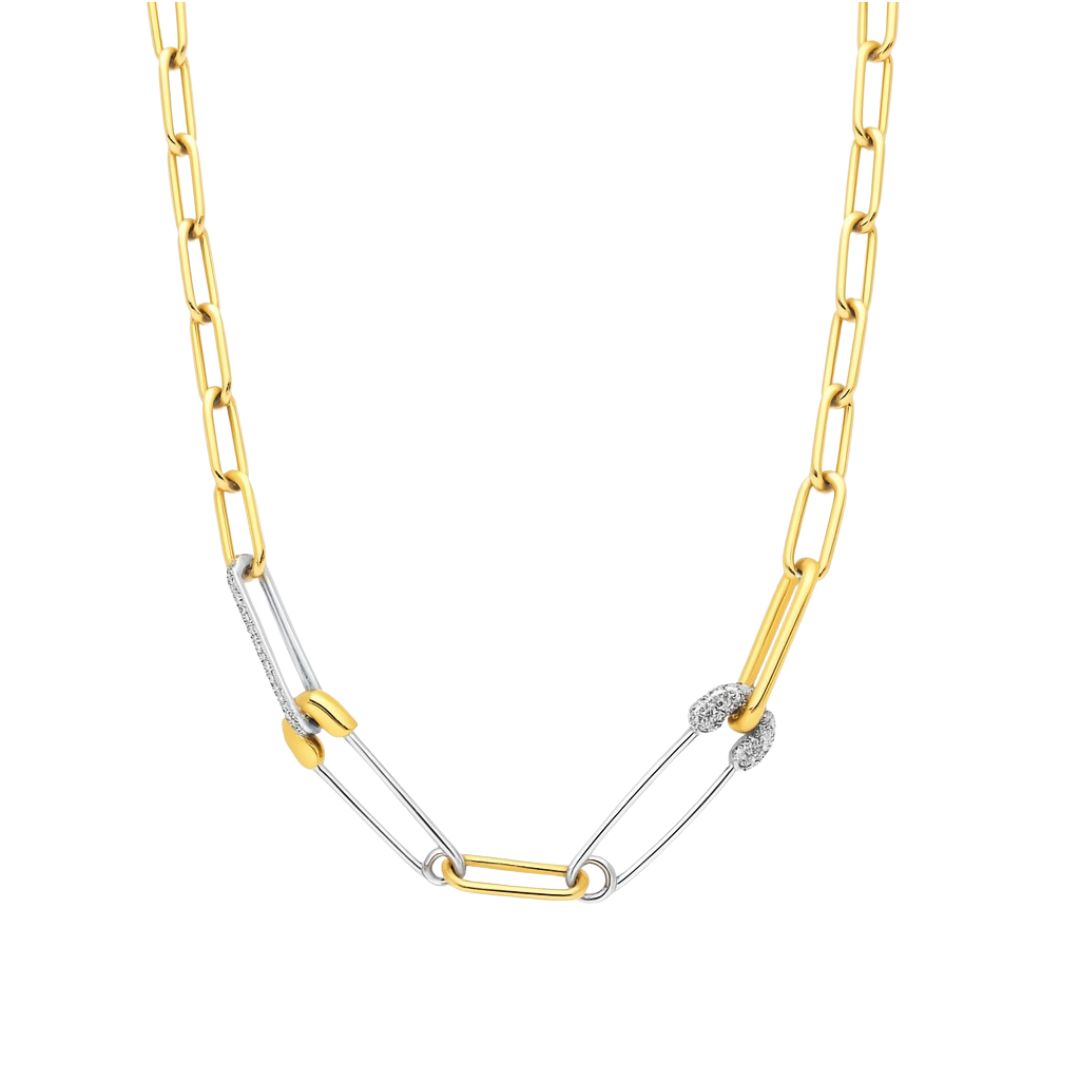 השרשרת מציגה עיצוב מודרני ומרשים המשלב חוליות מלבניות עשויות זהב בגימור מבריק.