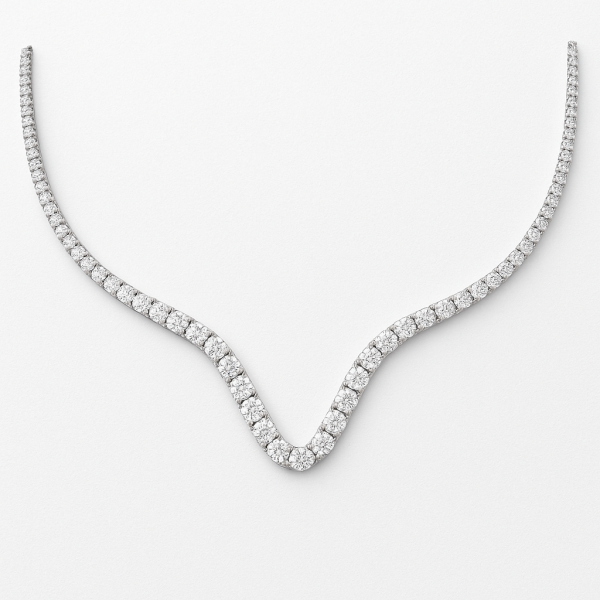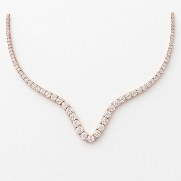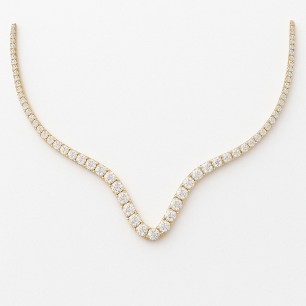 שרשרת אלגנטית מעוצבת בצורת V מחמיאה, עשויה זהב ומשובצת יהלומי מעבדה עגולים נוצצים באיכות גבוהה לכל אורכה.