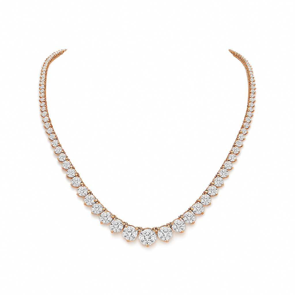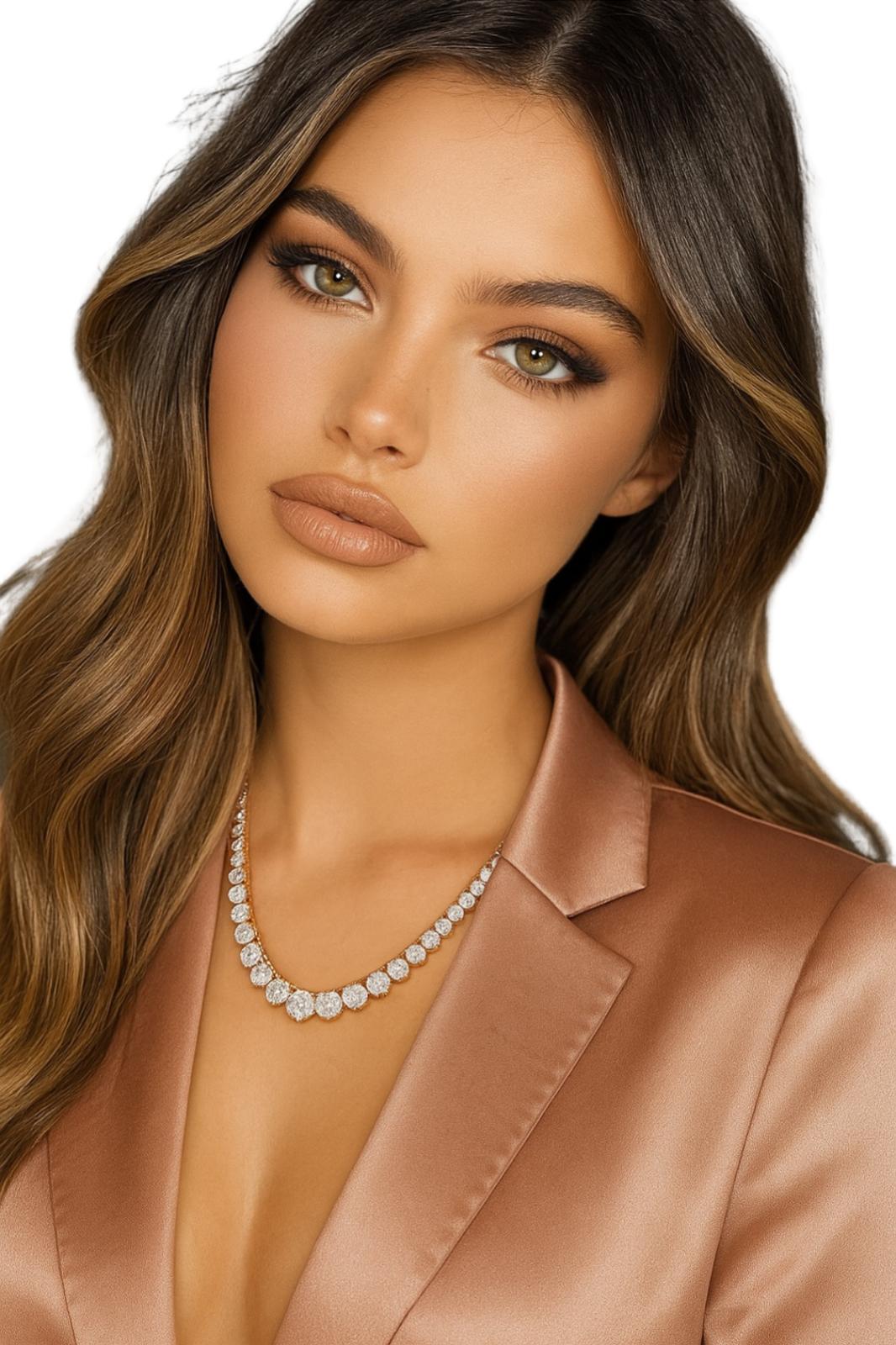 היהלומים מסודרים במדרג מרהיב שמעניק לשרשרת מראה מרשים ואלגנטי במיוחד – כתוספת מנצחת ללוק יוקרתי.