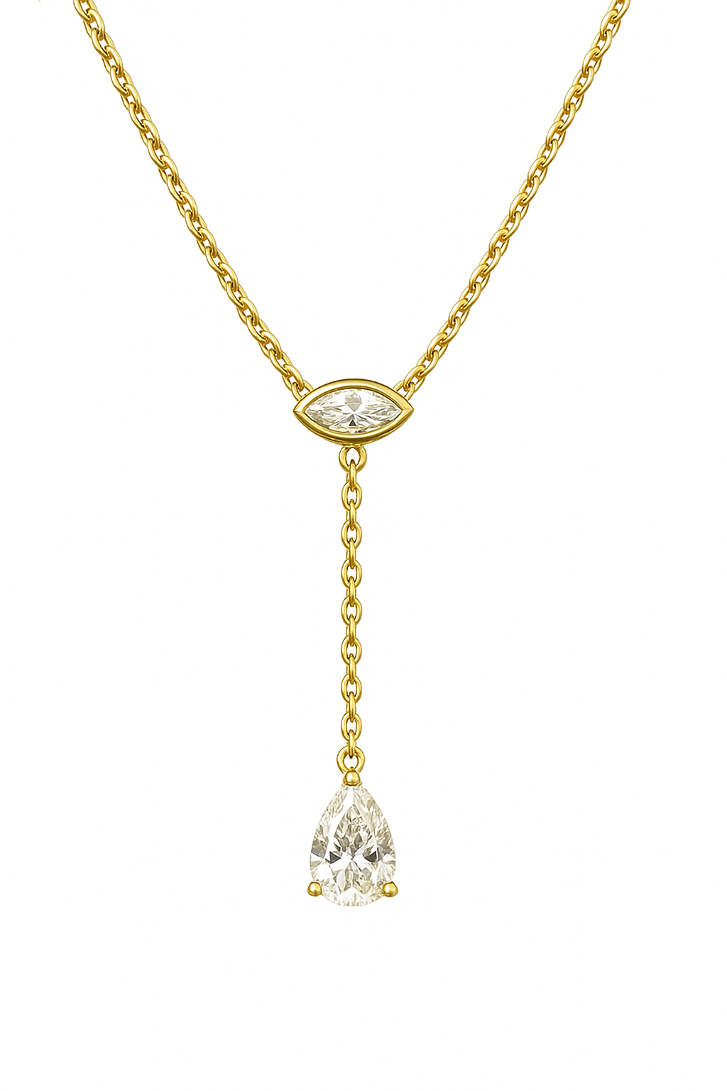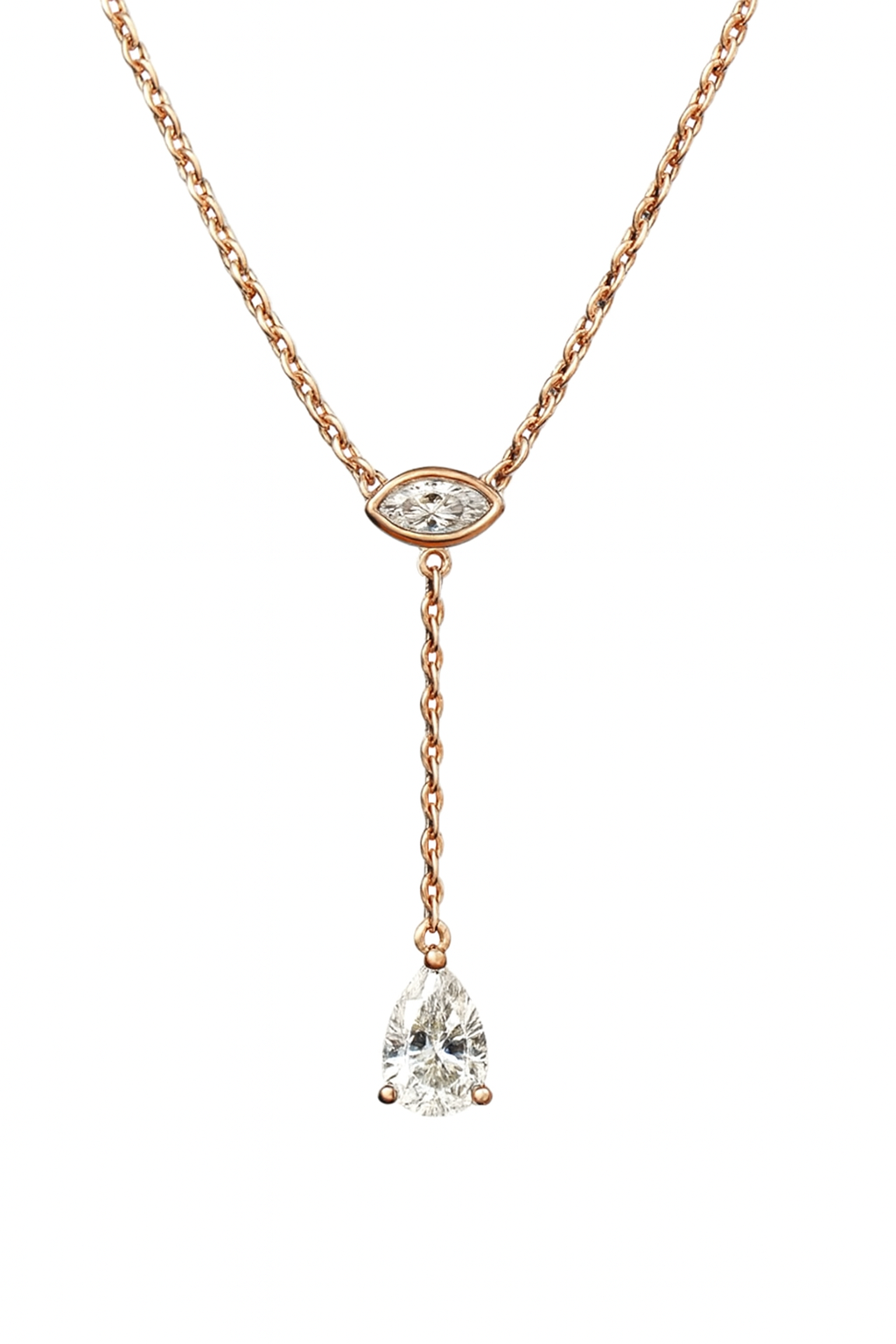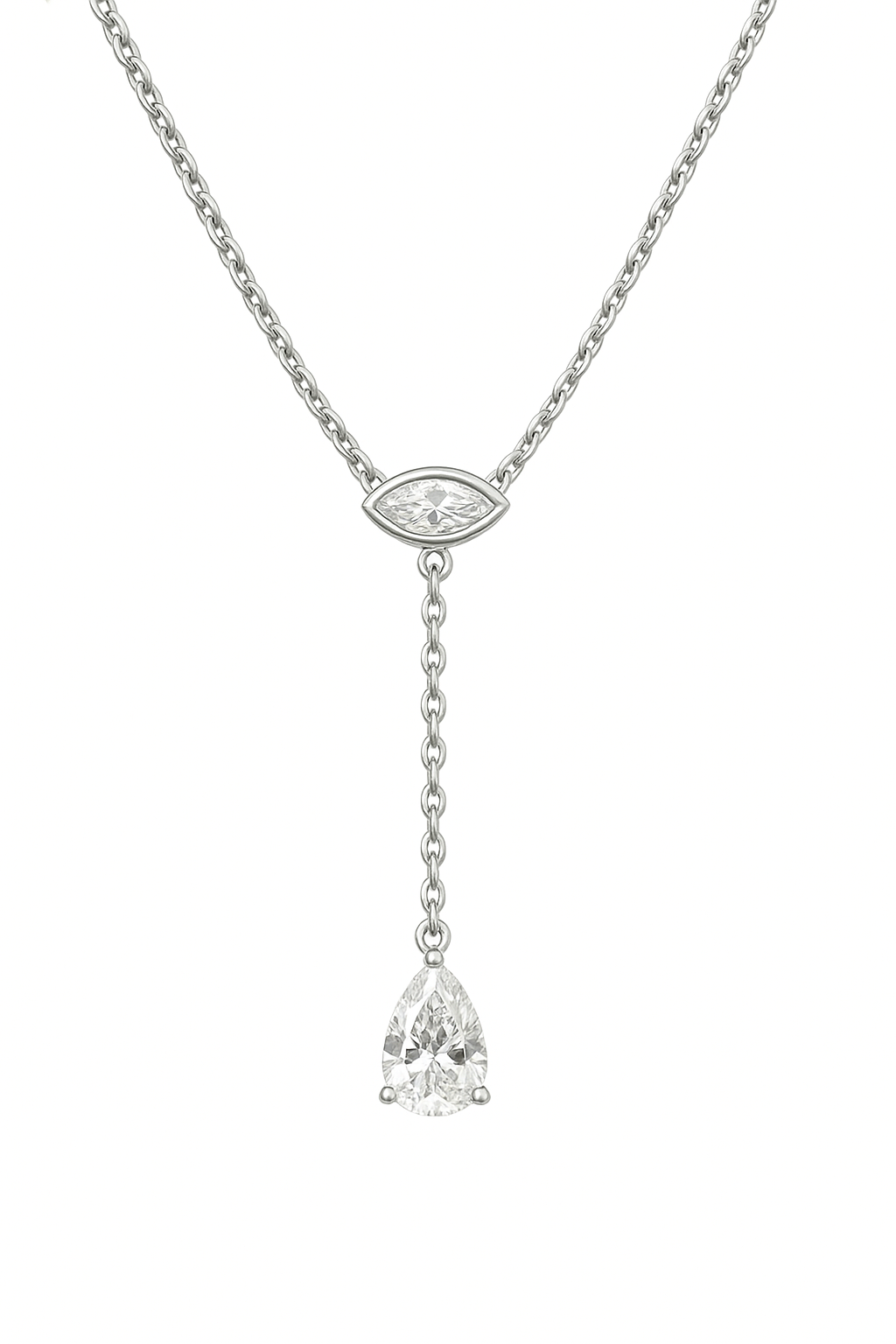 במרכז השרשרת משובץ יהלום בצורת מרקיזה במסגרת יוקרתית בעיצוב מריחה , ממנו משתלשלת חוליה דקה שמסתיימת ביהלום טיפה נוצץ, המוסיף תנועה וזוהר מרהיב.